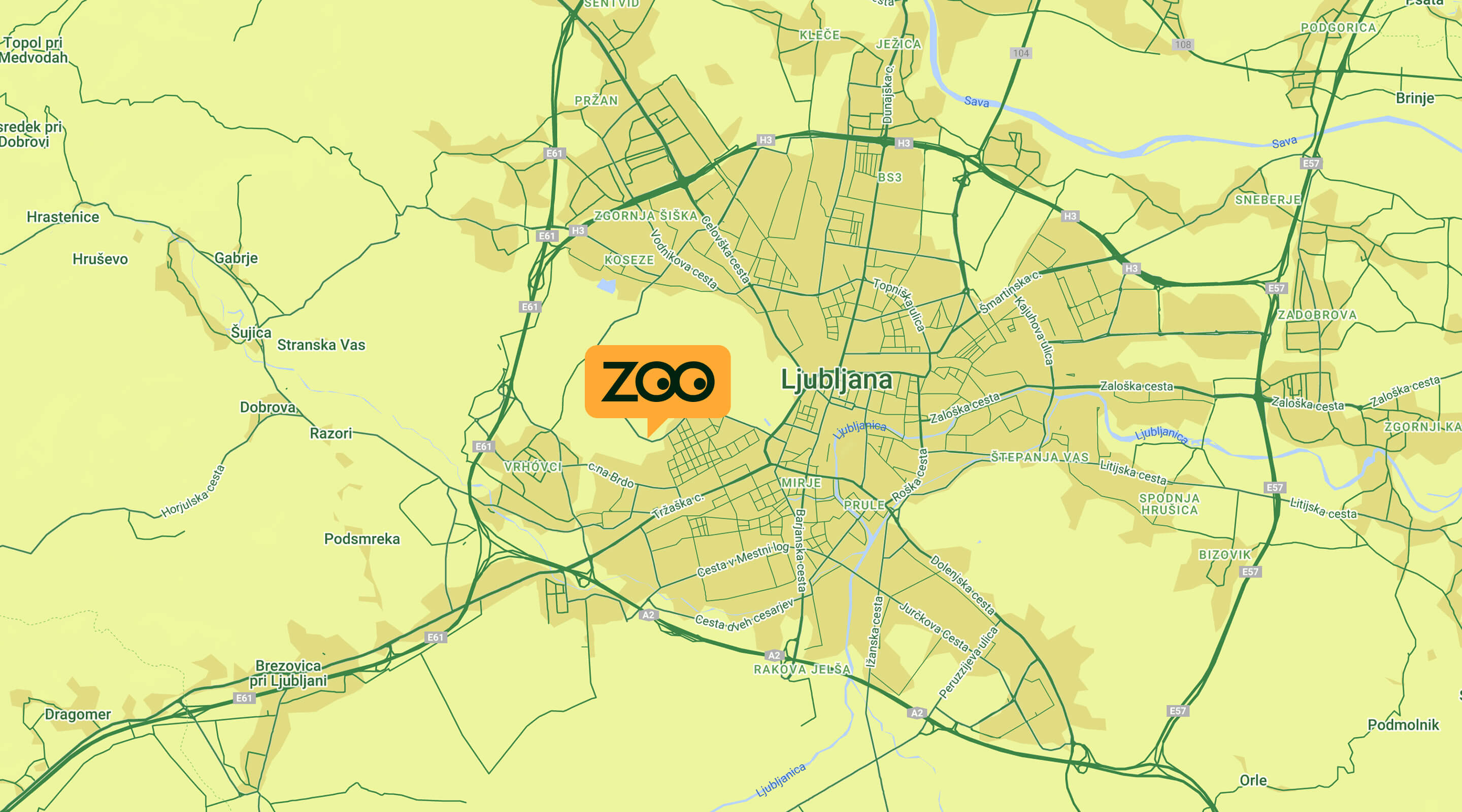 Z OBVOZNICE je pot do živalskega vrta označena in zato enostavna. Pri izvozu številka 16 - Brdo zavijete z obvoznice, nato pa sledite tablam ob cesti, ki označujejo pot do ZOO Ljubljana.