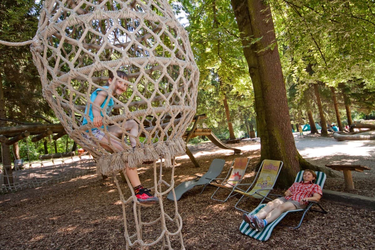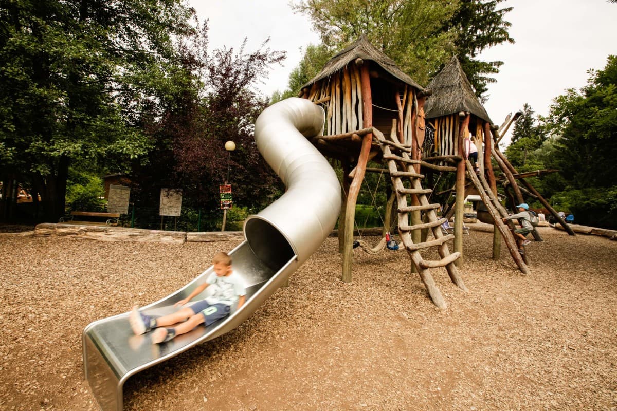 Gugalnice, tobogani, viseče košare, talni trampolini, peskovnik s tekočo vodo ... Otroci in starši lahko vsa igrala preizkusite skupaj.